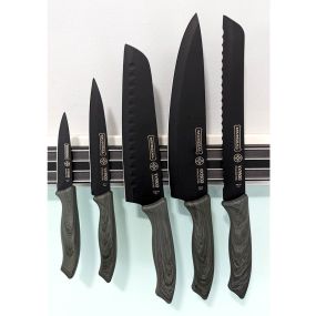 A thoughtful companion gift is a magnetic knife holder and utensil rack, which keeps knives stored safely on the wall, within easy reach, and frees up valuable counter space while adding a clean, professional look to the kitchen.