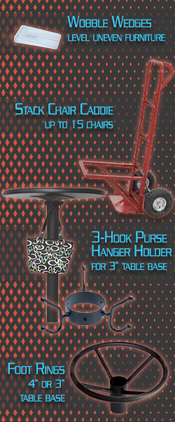 Have you ever gone to a restaurant, sat down at a bar height table, and realized you have no place to put your jacket or purse? Ensure your customers never experience this dilemma – Rapids offers a purse hook attachment for 3” columns. These attachments come with 3 hooks and have a resilient black powder coat finish.