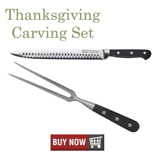 Serve Up a Little Slice of HeavenOnce your turkey has been properly cooked, stuffed, and otherwise prepared, it’s time to carve it. Our Thanksgiving carving set includes a 7” carver fork and a 10” slicer knife.Both are made from forged carbon German steel that provides exceptional sharpness and have an easy-to-grip POM handle. |