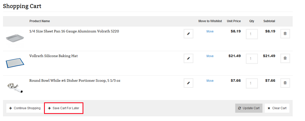 Another option is to save your cart. Once you have added all of your recurring items to your shopping cart, at the bottom of the cart is a “Save Cart for Later” option.